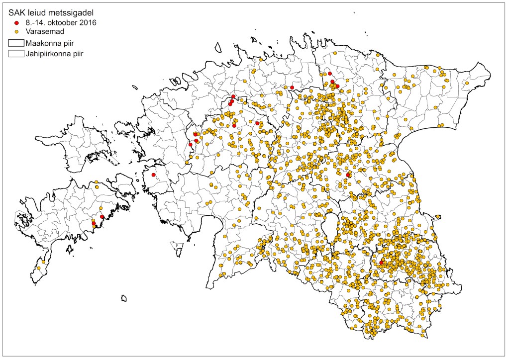 Veterinaar- ja Toiduameti andmetel tõi eelmine nädal taas SAK positiivseid proove, seekord 26 (16 kütitud ja 10 hukkununa leitud).