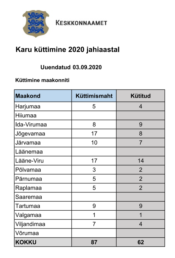 Keskkonnaamet kehtestas pruunkaru küttimismahuks Eestis sel hooajal 87 isendit. Lisaks jäeti reservi 6 pruunkaru küttimise luba.