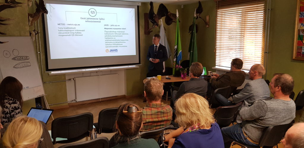 EJSi infosüsteemide Jahis ja Metsis arenduse hetkeseisust rääkis EJSi haldusspetsialist Karri Urban. Käimasoleva etapi arendused on jõudnud lõpusirgele. Karri Urban tutvustas lähikuude tööde ajagraafikut. Novembrikuus keskendutakse uue Metsise versiooni tutvustamisele ning detsembris on planeeritud suurem teavituskampaania „Kuidas vaadata enda jahidokumentide andmeid“.