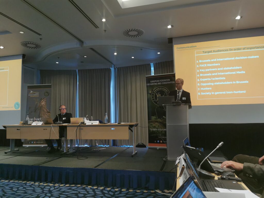 FACE president Tjorbörn Larsson rääkis avakõnes, et jahinduse tulevik on meie teha ja meie saame tulevikku muuta. Siiani käib FACE kampaania, mis on olnud edukas, aga endiselt on vaja teha tööd eesmärgi nimel ning iga jahimehe panus on oluline. Prantsusmaal koguti näiteks kõigest paari nädalaga 15 000 allkirja.