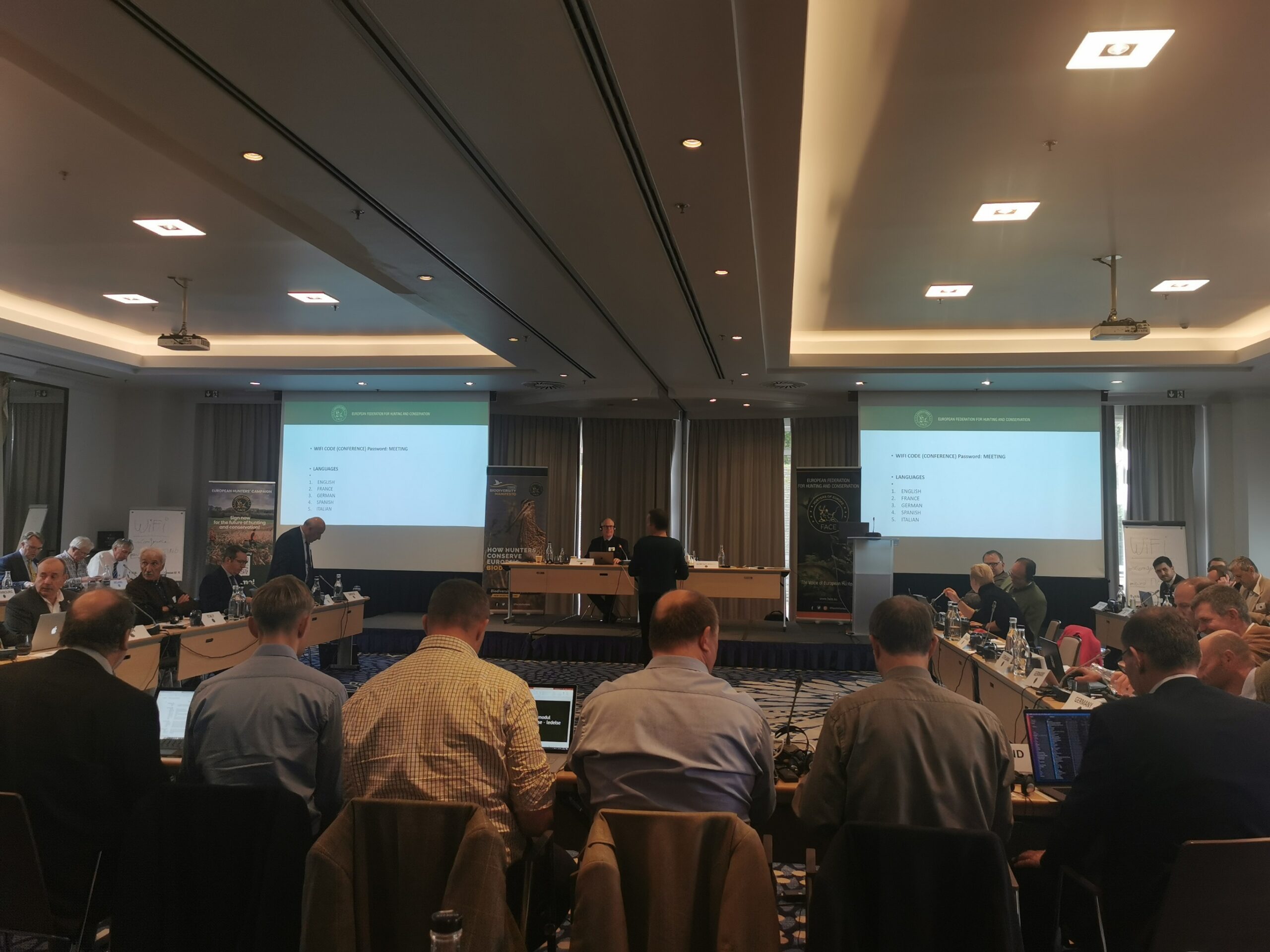 FACE president Tjorbörn Larsson rääkis avakõnes, et jahinduse tulevik on meie teha ja meie saame tulevikku muuta. Siiani käib FACE kampaania, mis on olnud edukas, aga endiselt on vaja teha tööd eesmärgi nimel ning iga jahimehe panus on oluline. Prantsusmaal koguti näiteks kõigest paari nädalaga 15 000 allkirja.