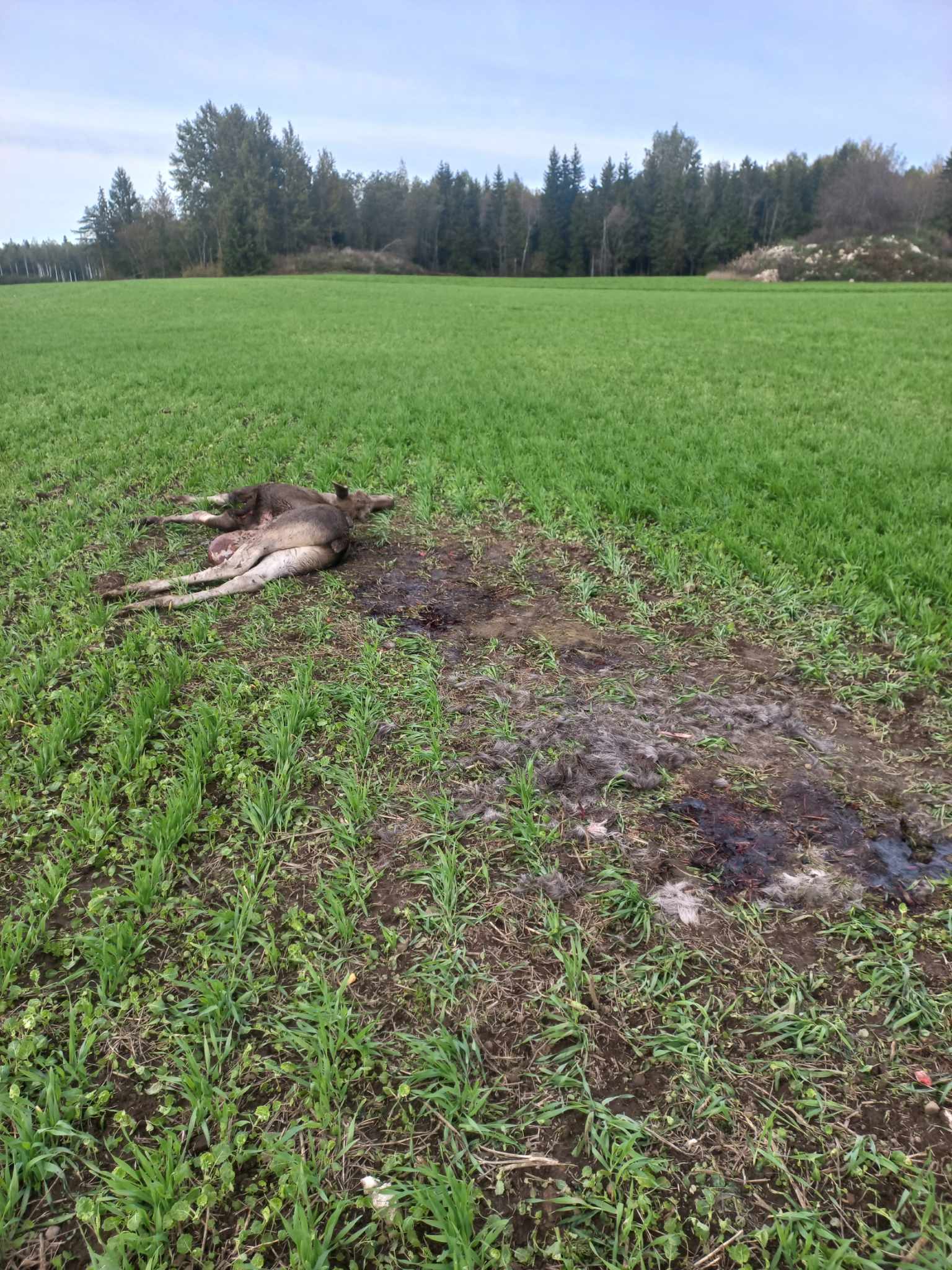 Kõvasti tallatud maapinna järgi oli arusaadav, et põdralehm oli osutanud huntidele tugevat vastupanu oma vasikaid kaitstes, aga seekord jäid hundid peale.
