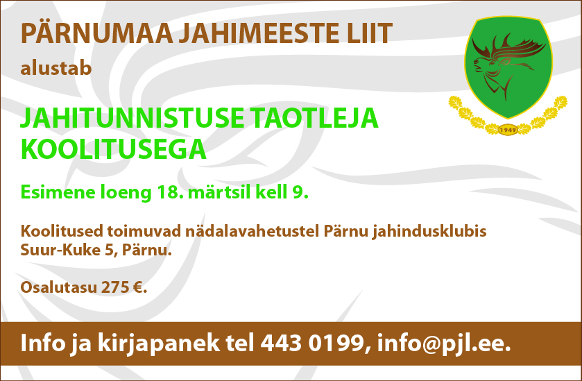 Pärnumaa Jahimeeste Liit alustab märtsis jahitunnistuse taotleja koolitusega.