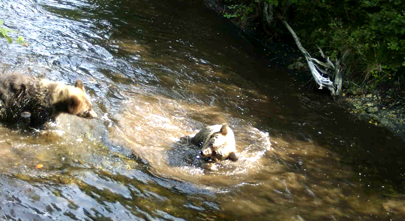 Möödunud nädalal jäi Esna jões rajakaamerasse karupere, kes jahutab end sooja suvepäeva eest.