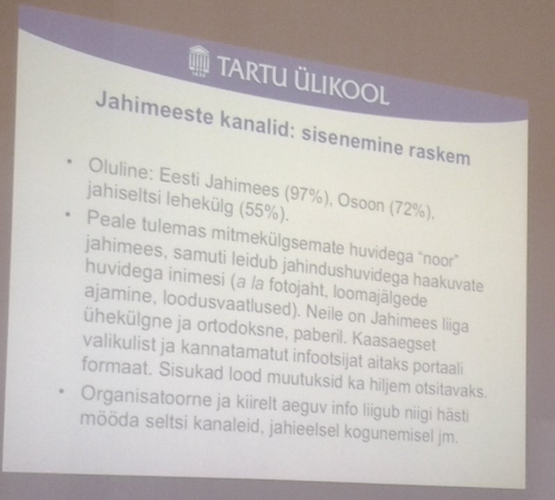 Täna, 28. mail toimus Telliskivi Loomelinnakus Eesti keskkonnaajakirjanduse lugejaid tutvustav seminar. Üks uuritav ajakiri oli Eesti Jahimees ning jahimehed osalesid ka vestlustes. Üks soovitus oli, et ajakirjal võiks olla oma portaal lausa ning siis jõuaksid huvitavad artiklid ka väljaspool sihtgruppi asuvate inimesteni.