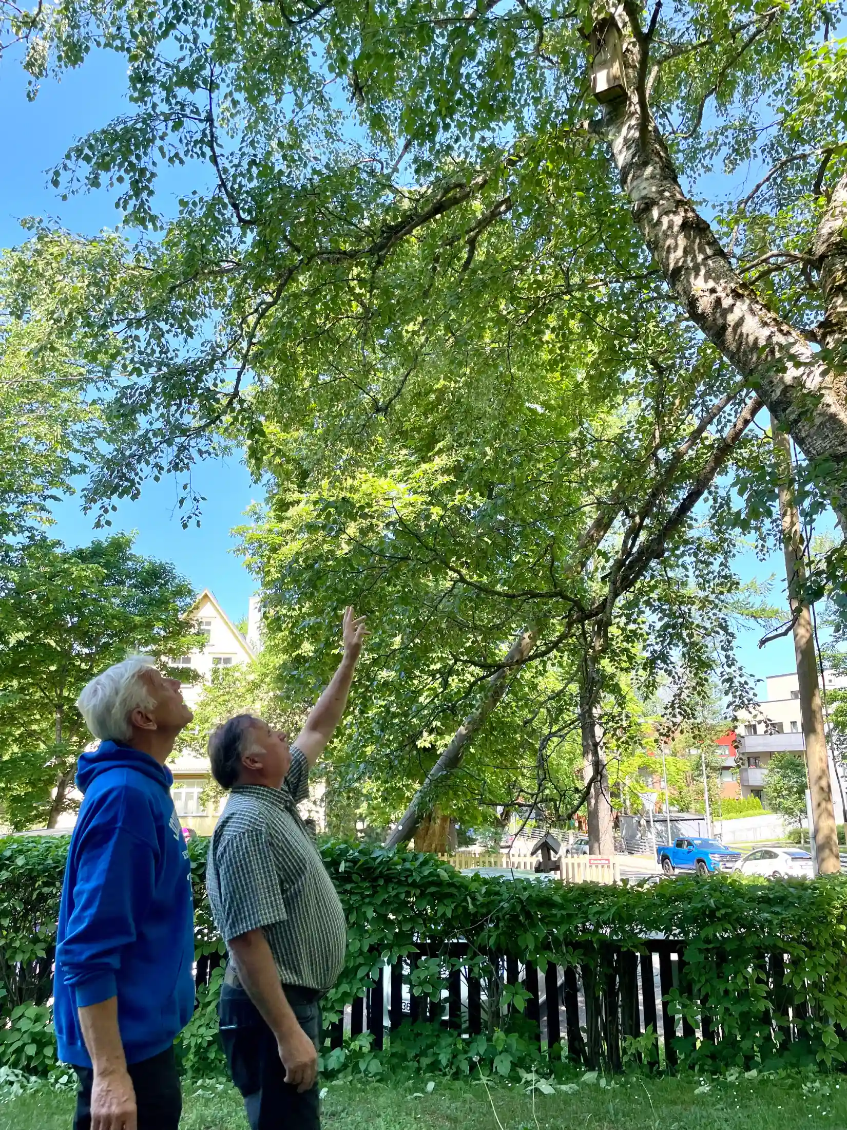 Indrek Tarand ja Tõnis Korts vaatasid üle kuldnoka pesakasti. Foto: EJS