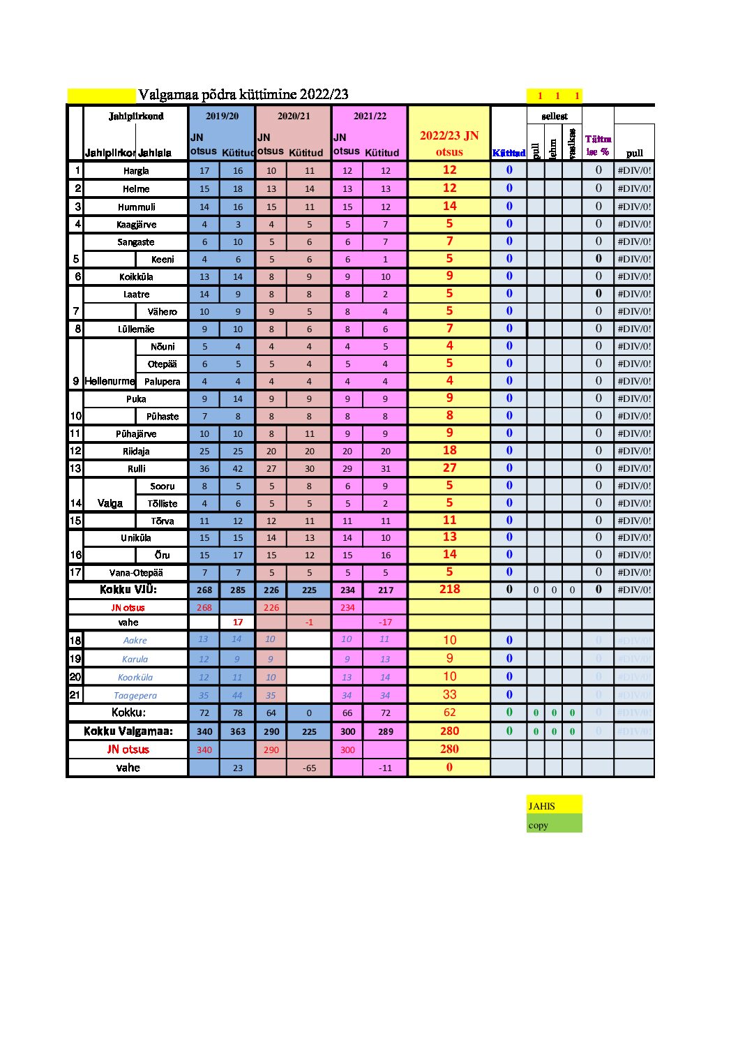Valgamaa Jahimeeste Ühistu  Küttimislimiidid 2022/2023 jahihooajaks suurulukitele