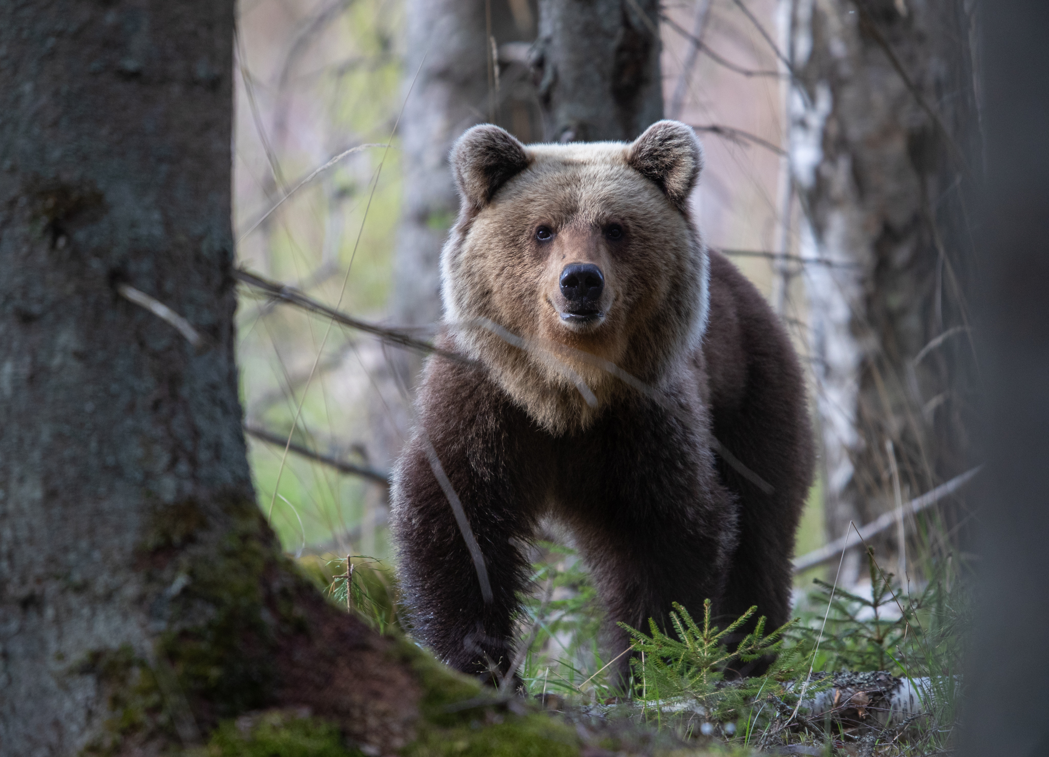 Mõne hetke pärast selgus tõsiasi, miks põdraema nii närviliselt ringi liikus – karu oli tulnud tema võsukest maha murdma. “Üks hetk oligi karu kaasikust väljas ning tiirutas põdraema ja vasika ümber, vasikas ema kõhu alla peites. Põdraema hirmutas sööstes kiirelt karu poole ning jalgadega tugevalt maapinda pekstes,” selgitas Karask.