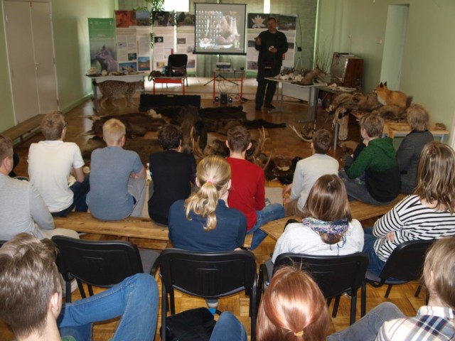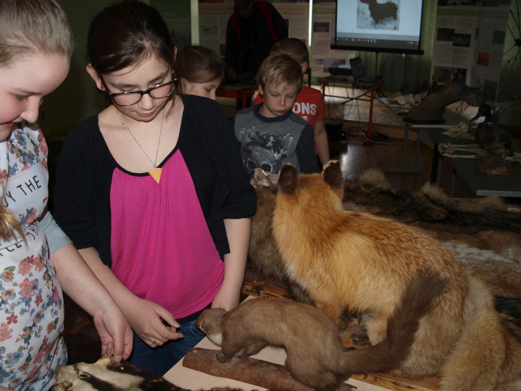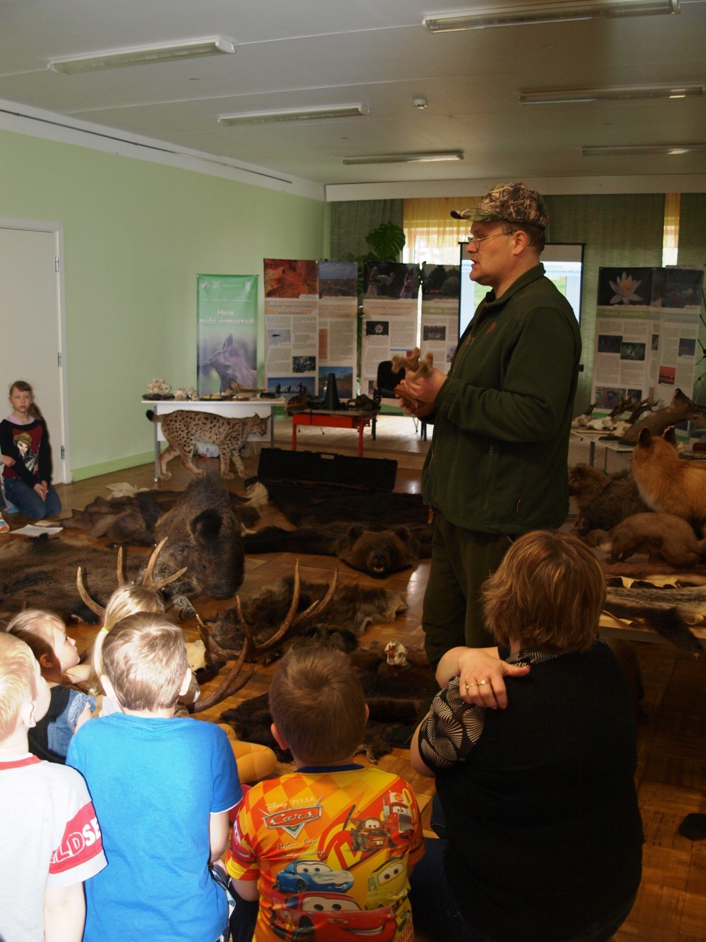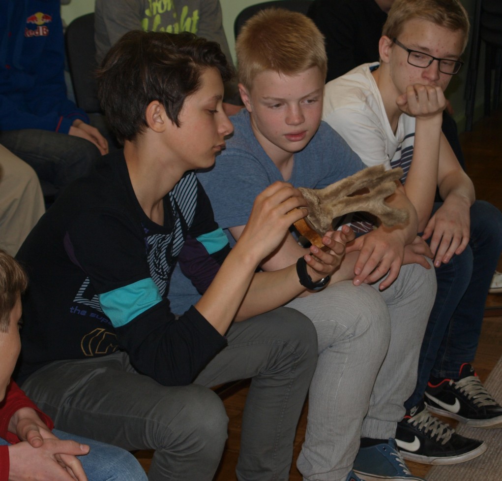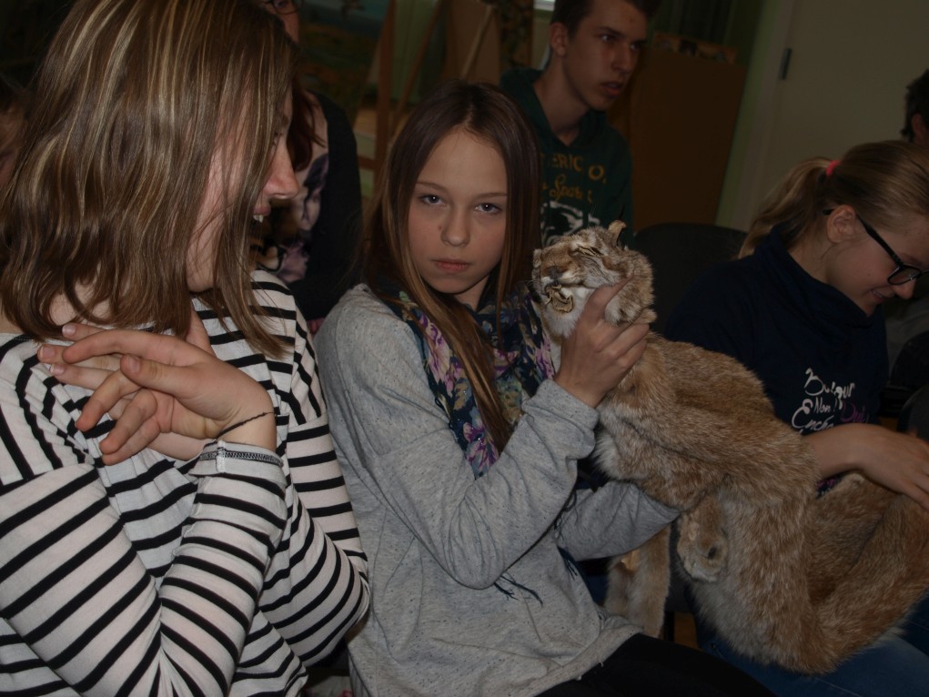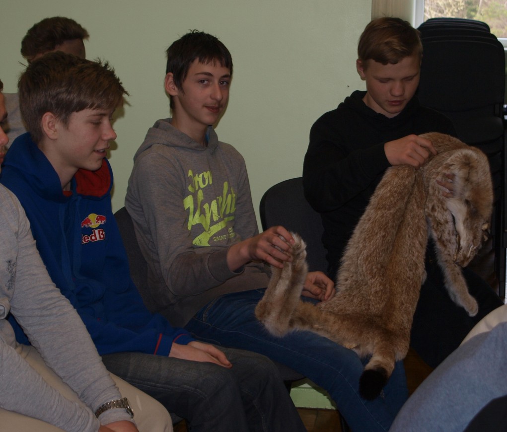 Esimesena olid platsis kõige nooremad, kuni 4. klassi lapsed, kes olid enne loengu algust väga elevil. Ja miks ka mitte, kui kaasa oli toodud näitamiseks ja isegi katsumiseks hulga topiseid, sarvi ja karusnahku. Eriti suurt tähelepanu äratasid karunahk ja ilvese topis.