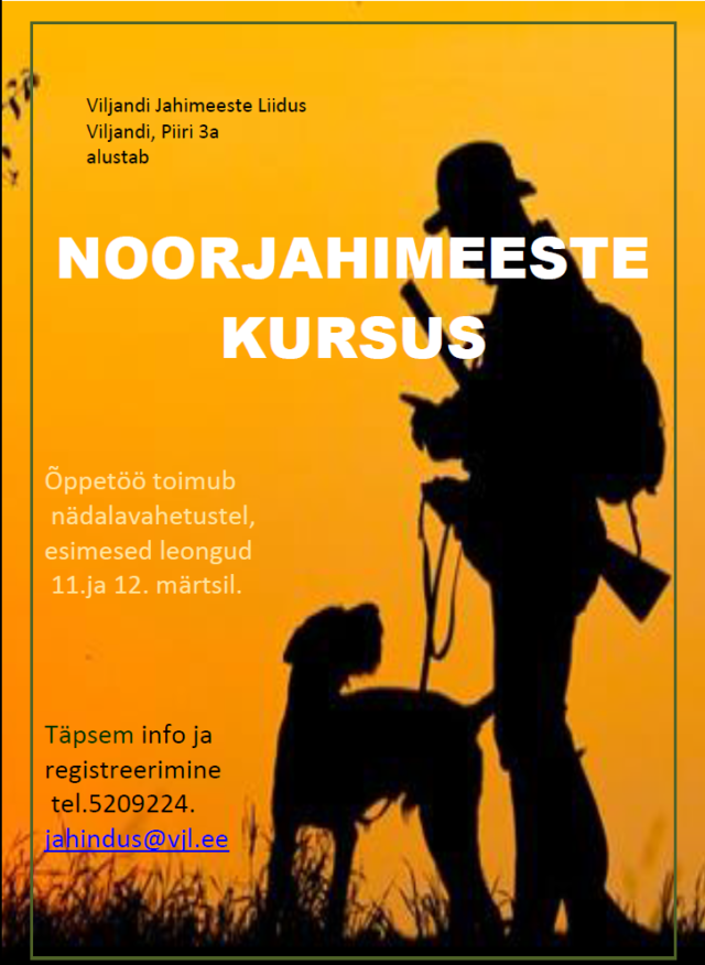 Uudised Koolitused Noorjahimeeste kursus Viljandis UudisedKoolitusedTeated Noorjahimeeste kursus Viljandis Lisas Andra - veebr. 10, 2017 3361 Viljandi Jahimeeste Liit alustab 11. märtsil noorjahimeeste kursusega. Õppetöö toimub nädalavahetusteti Viljandis (Piiri 3a). Täpsema info ja registreerimine telefonil 520 9224 või meili teel jahindus@vjl.ee