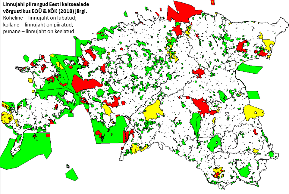 Eesti Ornitoloogiaühingu ja Keskkonnaõiguse Keskuse analüüsist selgus, et kehtiv jahiregulatsioon ja kaitsealade kaitse-eeskirjad lubavad linnujahti pidada kahel kolmandikul Eestis looduskaitse all olevatel maadel.