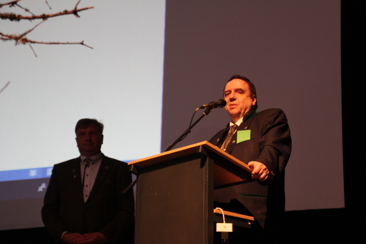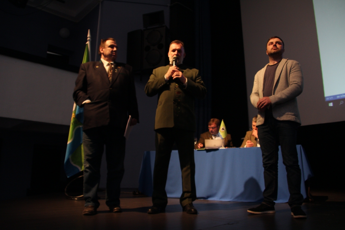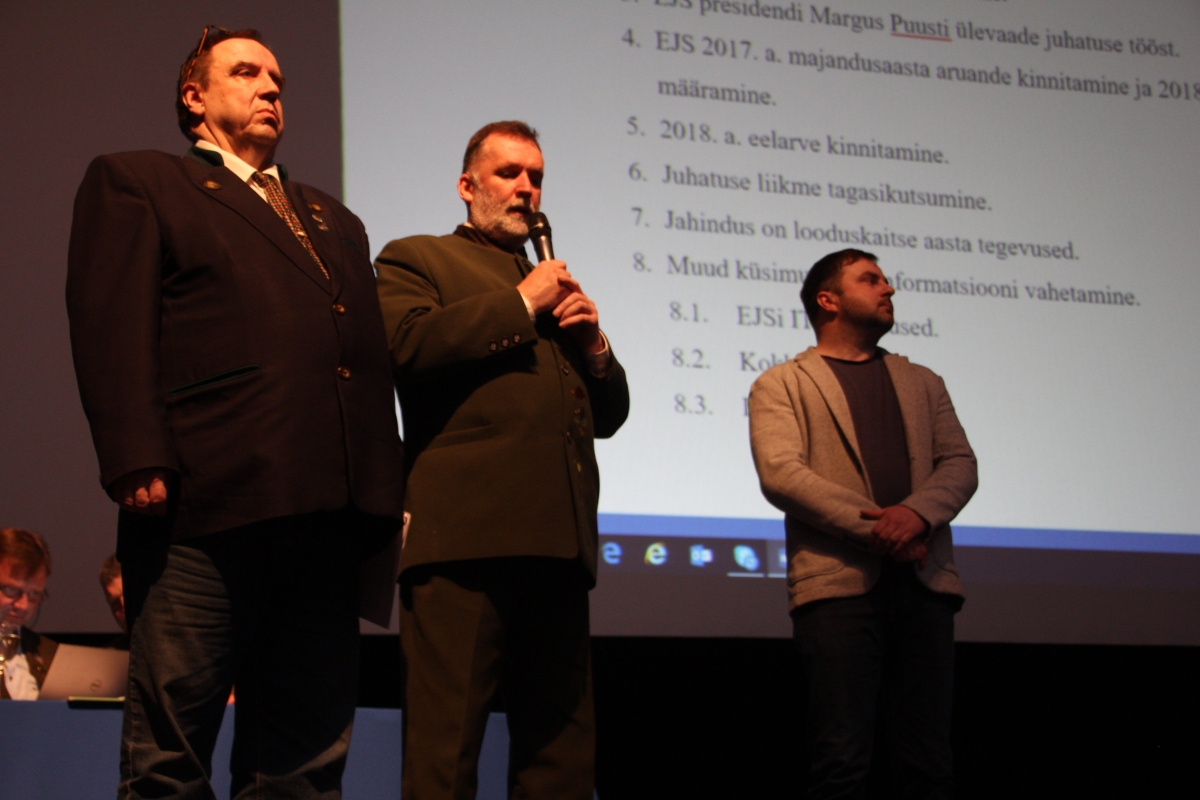 Pärnumaa Jahimeeste Liidu tegevjuht Eero Nõmm, tegevjuhi asetäitja Andres Lillemäe ning tegevjuht Tõnis Korts tutvustasid Eesti jahimeeste kokkutuleku korraldust ja kutsusid kõiki volinikke osalema.