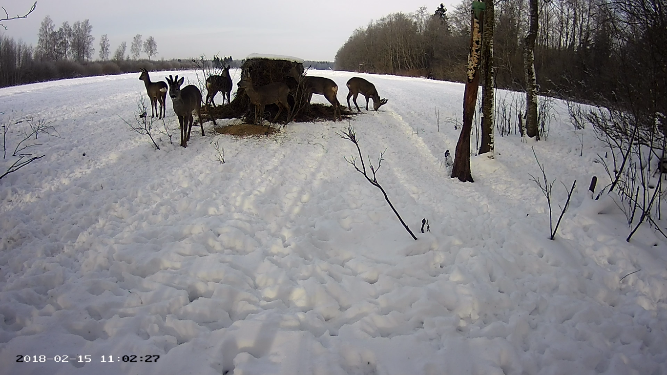 Kui hommikul oli rajakaameras näha paari metskitse, siis lõunaks on kogunenud söödaplatsile juba 7-pealine kitsekari.
