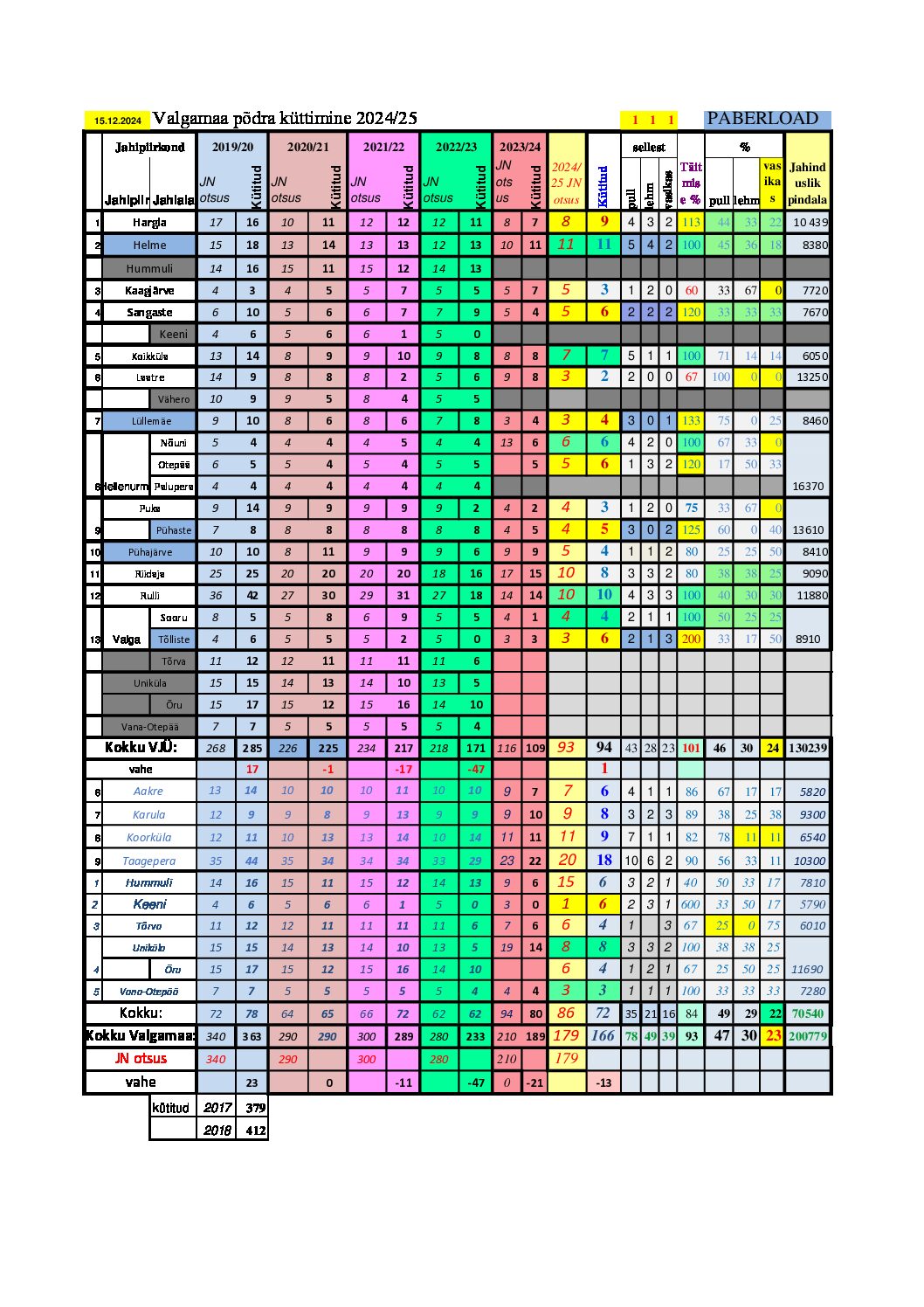 Valgamaa Jahimeeste Ühistu Põtrade küttimise limiidid ja küttimise tulemused Valgamaal alates 2019.aastast Valgamaa Jahimeeste Ühistu Põtrade küttimise limiidid ja küttimise tulemused Valgamaal alates 2019.aastast Lisas Valgamaa Jahimeeste Ühendus - jaan. 15, 2025 142 VALGA 2024-25 limiidid, küttimine-põder,