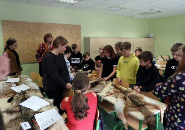 Räpina aianduskooli õpetaja Arvi Lepisk tutvustas metsloomi nende nahkade, koljude ja sarvede abil. Räägiti jahiulukitest lähemalt ja täideti õpetlik tööleht ning lahendati loodusteemaline ristsõna. Lõpuks püüti jäljerida kujutav pilt sobitada õige loomaga.