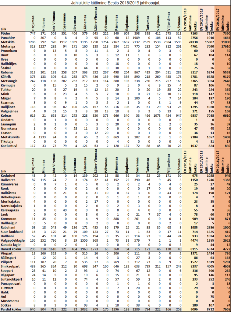 Täiendatud tabel küttimisstatistika maakonniti leiab SIIT.