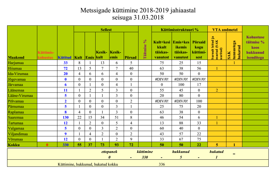 Märtsi lõpu seisuga on jahimehed taudileviku piiramiseks küttinud 330 metssiga.