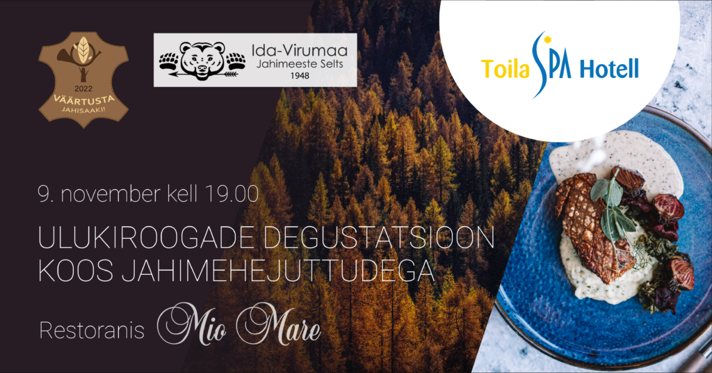 Toila Spa Hotelli restoran Mio Mare koostöös Ida-Viru Jahimeeste Seltsiga ja Ida-Viru Ettevõtluskeskusega kutsuvad Teid osa saama ulukiroogade nädalast.