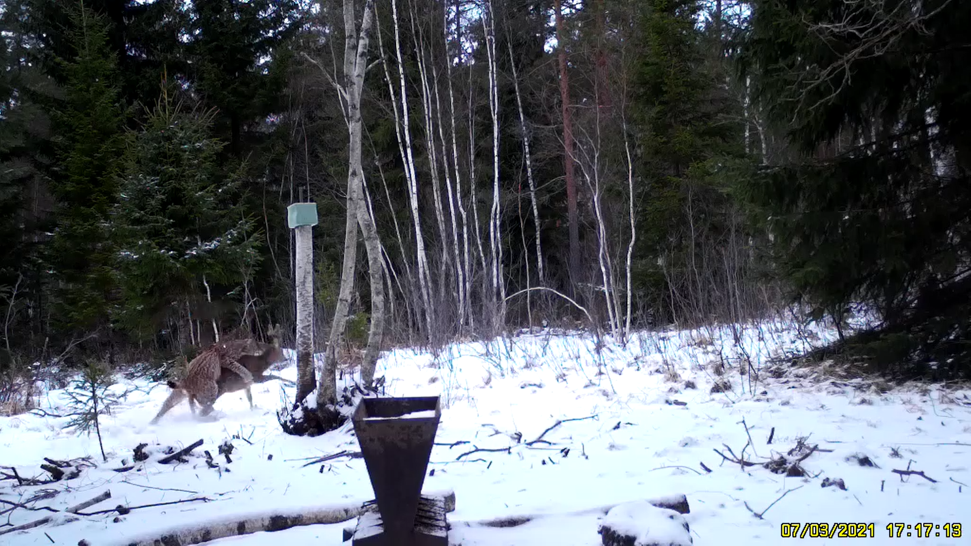 8. märtsil jäi Pärnu maakonnas Lääneranna vallas Lõpe jahiseltsi maadel rajakaamerasse huvitav hetk sellest, kuidas ilves peab jahti metskitsele.