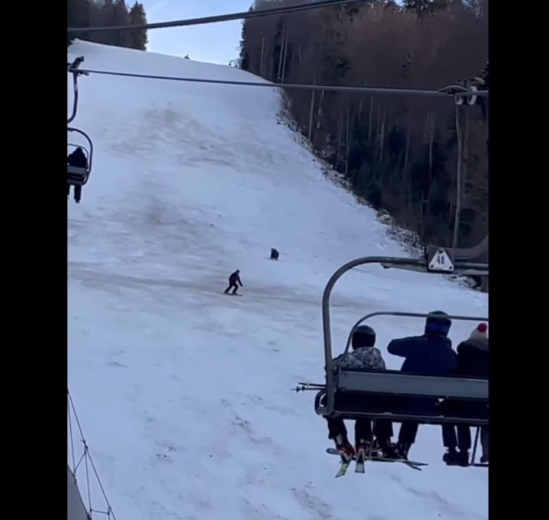 Suusakuurordi külastajad nägid, kuidas mäest laskus alla üks suusataja ja talle jooksis järele pruunkaru, kirjutab 15min.lt. Suusatajat hoiatati ja ta suutis säilitada kainet mõistust. Ajutiseks tähelepanu kõrvale juhtimiseks lasi suusataja oma seljakoti maha, misjärel karu peatus ja asus kotti uurima. See andis suusatajale aega loomast eemalduda ja turvalisse kohta jõuda.