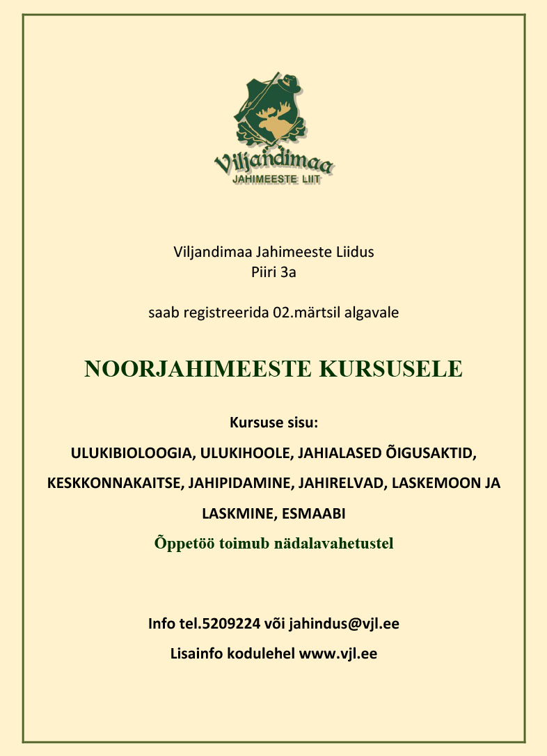 Viljandi Jahimeeste Liit alustab noorjahimeeste kursusega 2. märtsil jahimeeste liidus (Piiri 3a).